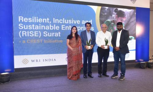 Surat, August 28, 2023: WRI India launched Resilient, Inclusive and Sustainable Enterprises (RISE) Surat, with the support of the Ares Charitable Foundation’s Climate Resilient Employees for a Sustainable Tomorrow (CREST) initiative. RISE Surat, a pioneering initiative, aspires to equip at least 50 MSMEs and 500 workers in Surat’s textile sector with the necessary tools, knowledge, and skills needed for a low-carbon transition in India and help them develop easy and practical solutions.