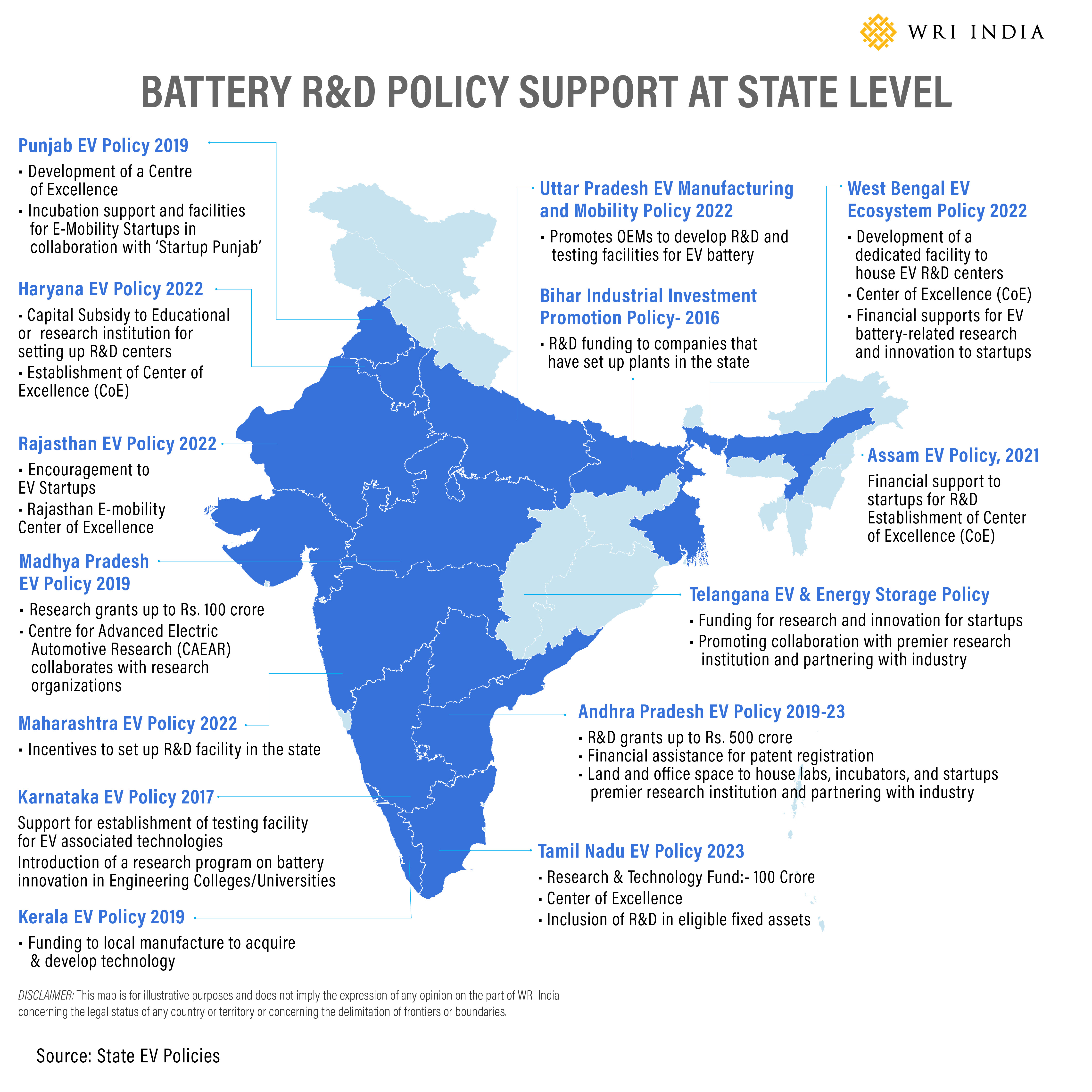 The Government of India is implementing various initiatives such as Manthan Platform, NRF to improve battery R&D ecosystem through funding, incentives and collaborative efforts. State governments, under their specific EV policies, are issuing research grants, incentives and establishing Centers of Excellence (CoE) to promote industry-led collaborations (as shown in Figure 7).