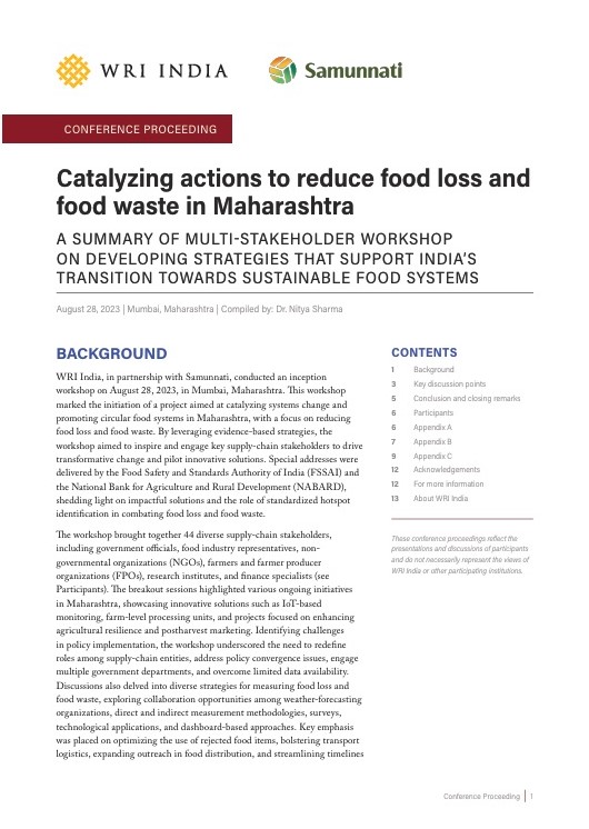 Catalyzing Actions to Reduce Food Loss and Food Waste in Maharashtra