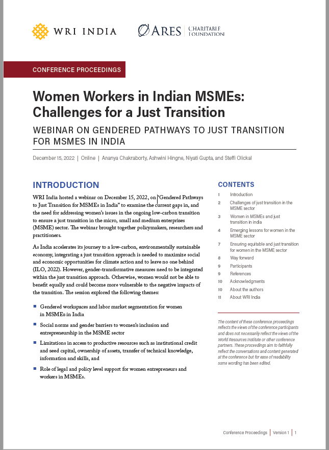 The proceedings summarize key takeaways from a webinar on “Gendered Pathways to Just Transition for MSMEs in India” hosted in December 2022 by WRI India.